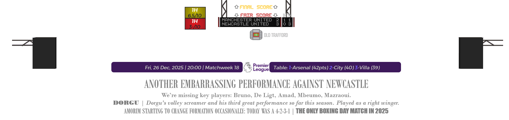 FRI, 26 DEC 2025 | 20:00 | MATCHDAY 18