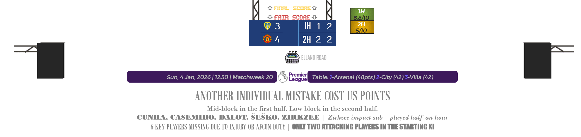 SUN, 5 JAN 2026 | 12:30 | MATCHDAY 20